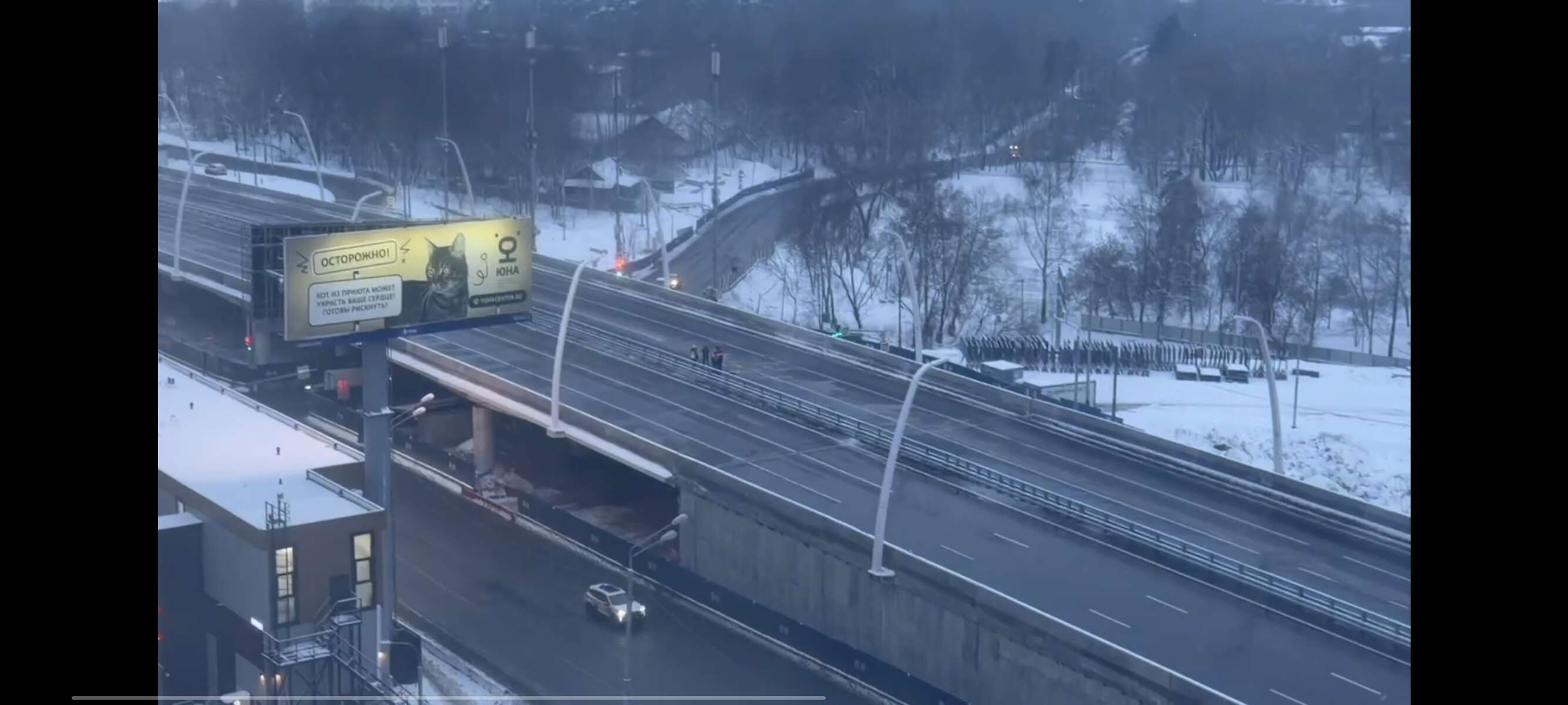 Сегодня вечером, со стороны области, рабочие соединяли старый и новый отбойники